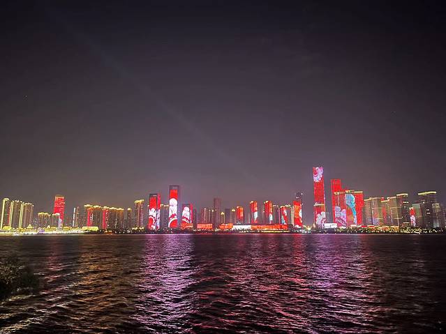 七点一到,湘江江面犹如变了戏法,华灯初上,夜幕降临,盛世华诞,此刻此景,目光所致,心中澎湃,何其有幸,生于华夏,祝愿祖国繁荣昌盛,75周年生日快乐。
