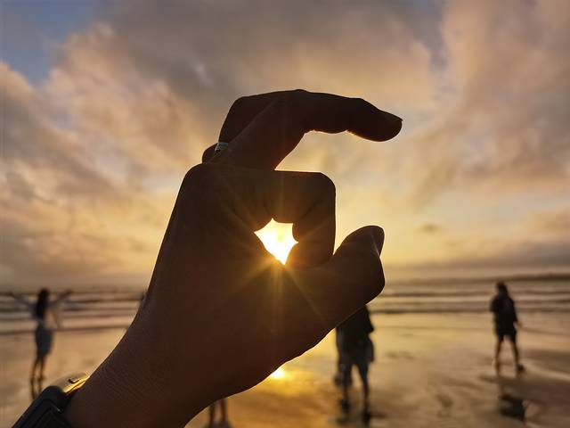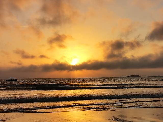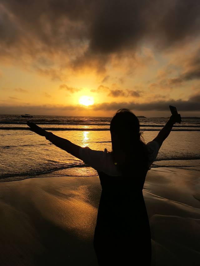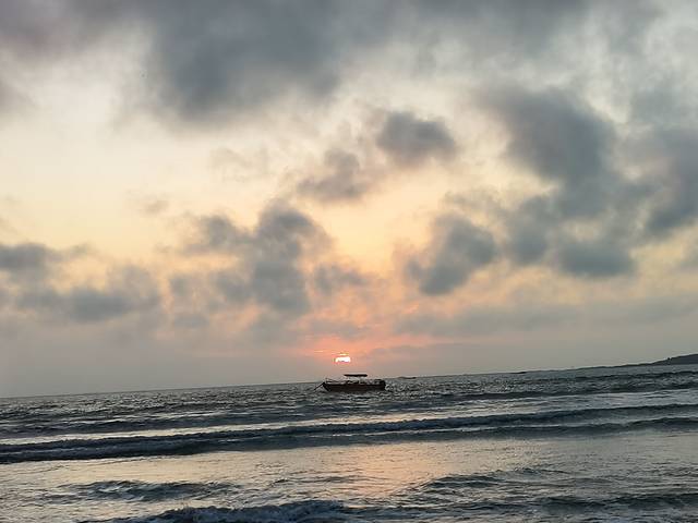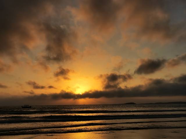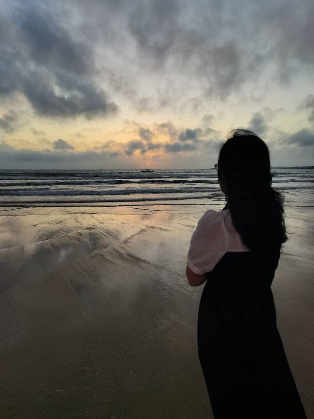 5点半酒店出发,骑共享电动车,到龙王头沙滩看日出