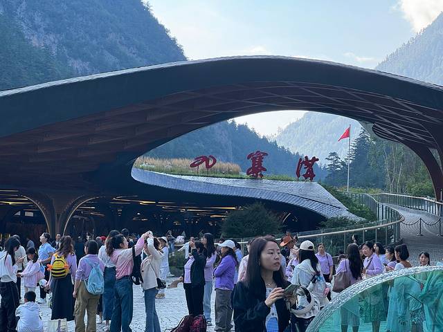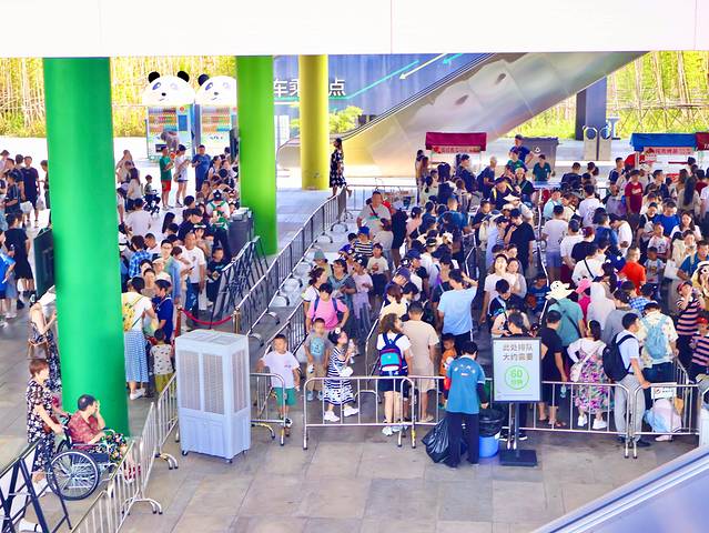 我们有买摆渡车的票,但是实在是人太多了,看着里一圈外一圈的人,我们也放弃了坐车的想法。从熊猫邮局回去的时候,是正好遇到人少再加上小朋友累的走不动了,也排了大概10分钟的队坐回西门附近。所以其实景区的处理能力还是值得表扬的。全程摆渡车一直有在接人,每隔一小段就有辆车过来。排长队完全就是因为人太多了