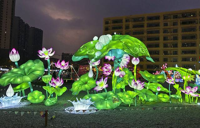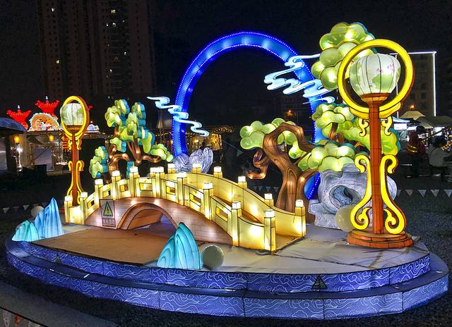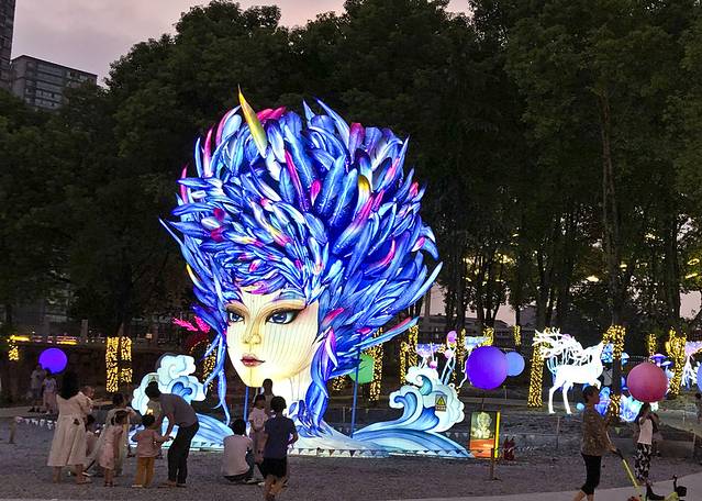 6:30蒸水江对面花火集市的灯亮了,这是衡阳为了21号的湖南旅游发展大会而准备的。一片空地上一个个大型花灯清丽美艳,广场里面还有一些小工艺品和小吃等,中间还穿插几个表演,创意不错,只是规模小些,细看每个花灯造型色彩俱佳,人物的眼睛还能眨眼。我在里面走了一圈又坐了一会儿,这在酒店附近的节目还是相当不错。