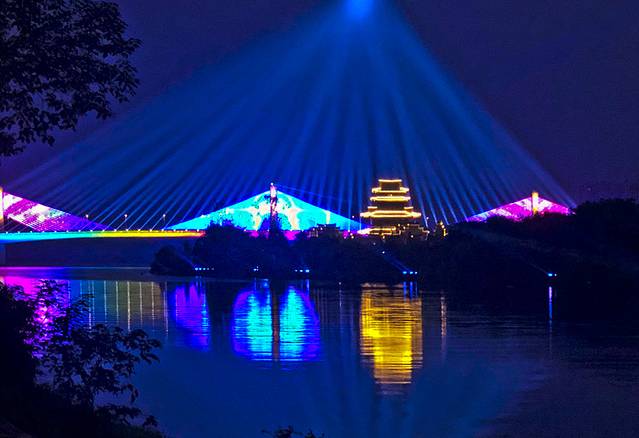 东洲湘江大桥上的灯光早就开始闪亮了,各种色彩图案变幻着,绚丽多姿地在眼前晃动跳跃,不断地在心中点赞,只是手机拍不好,只能眼睛享受了。