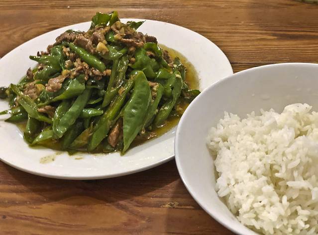 回房间就着咖啡又吃了块月饼,便去火车站出发郴州。入住郴州站附近的7天,这个订单还可以免费升级,不到90元的大床间感觉还不错。只是附近没什么吃的,观察了半天只好进了一个小饭馆要了一个小炒肉,我是最不爱吃这样炒菜的。