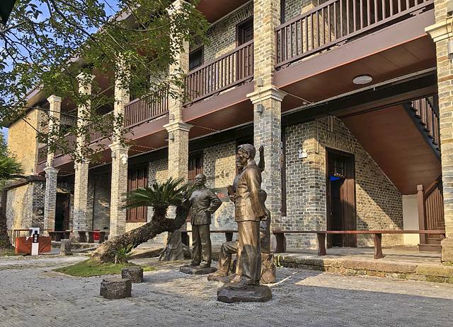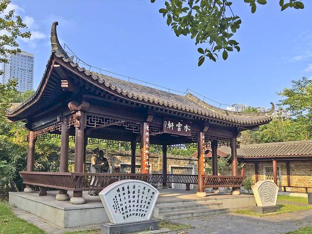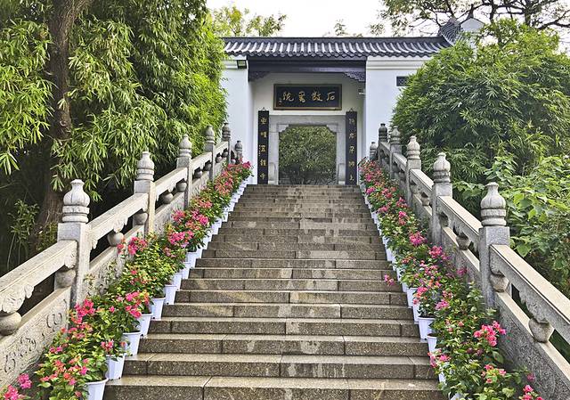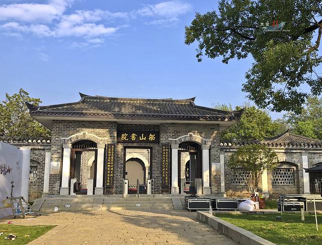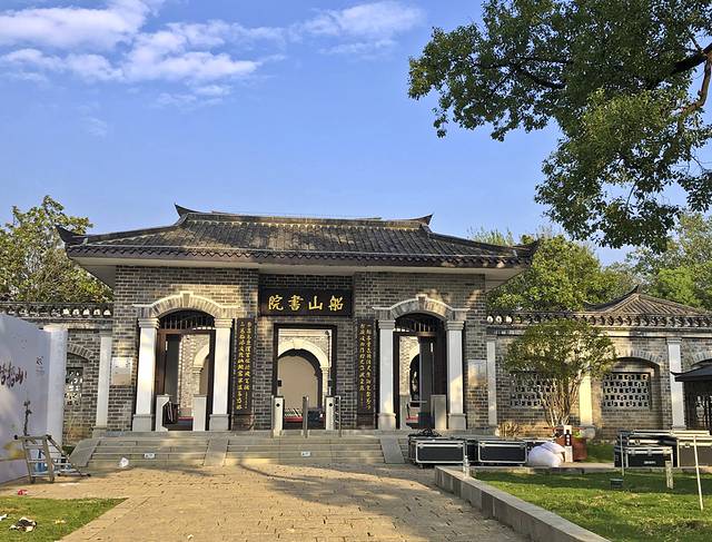 由于景区没开放,除了干活的工人很安静,找了个有桌椅的荫凉地儿,吃了我的早点-月饼就咖啡,开始去找船山书院。船山书院在东洲岛的西侧,好多维修收尾的设备还没有收拾好,门口坐着个保安,我便过去搭话,他问我是怎么进来的,告之实情后,他也好心地让我进去了。最想游览的船山书院就这样也收获了,这就是独行的好处。