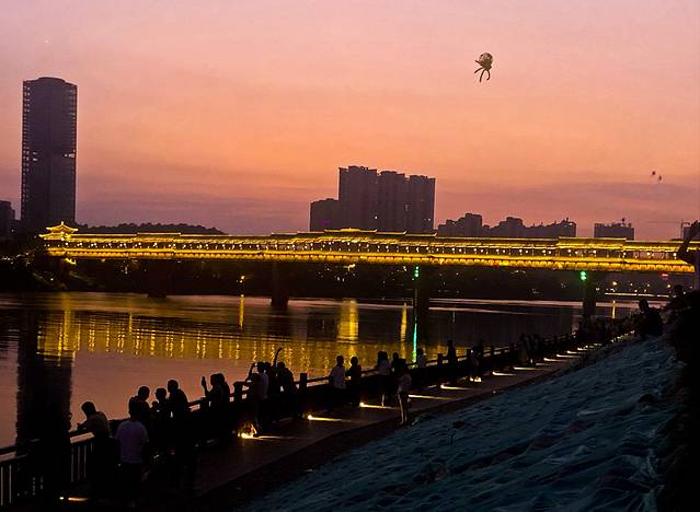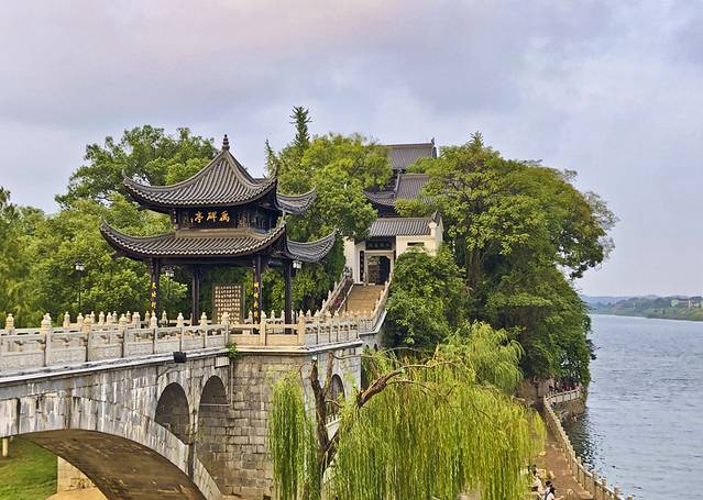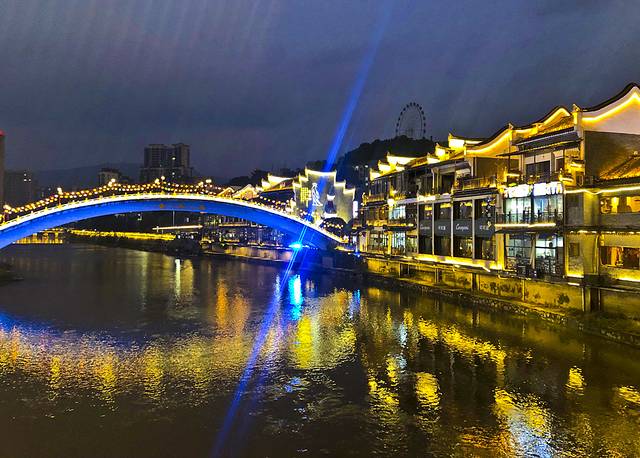 漫步到江边还看见了几座形态不同的桥,有灯光时倒映在水中应该非常漂亮。这一大片古建筑与民居,都是体验湘南文化和郴州特色的好去处。
