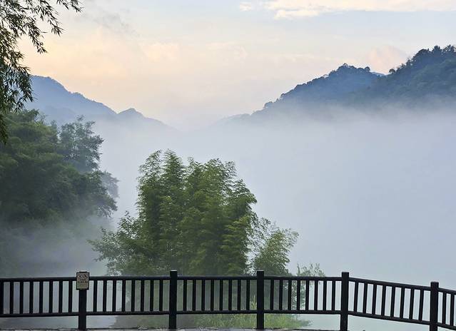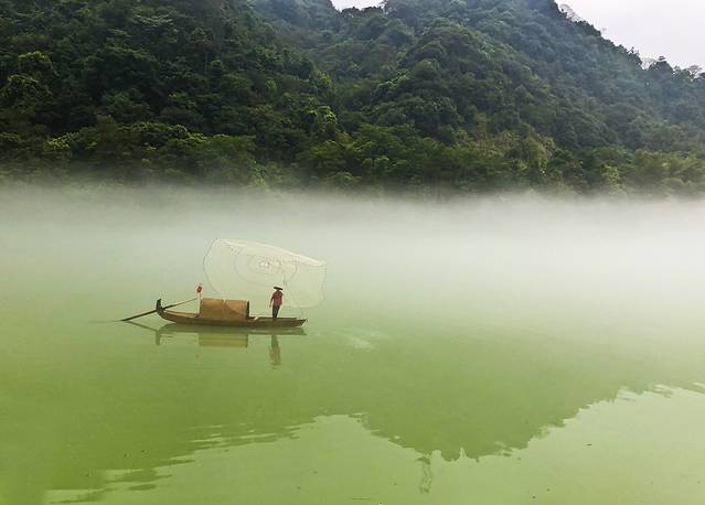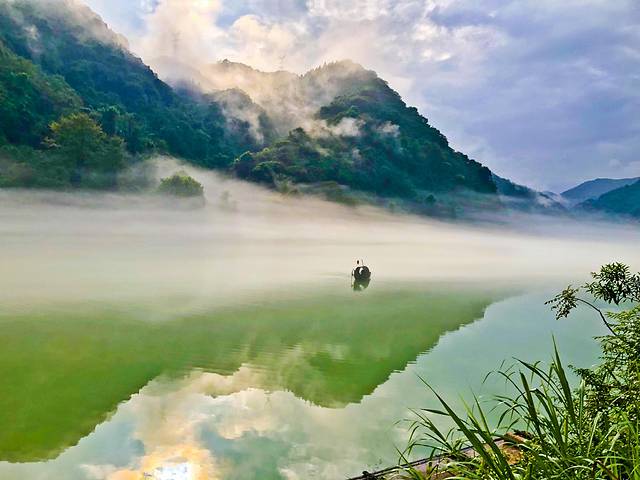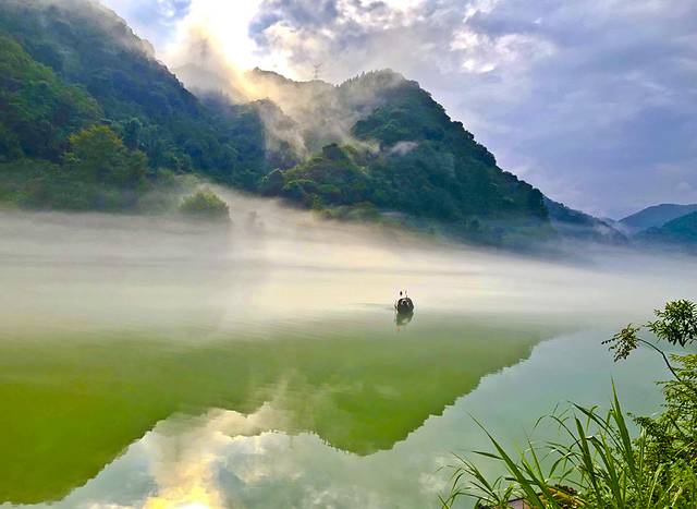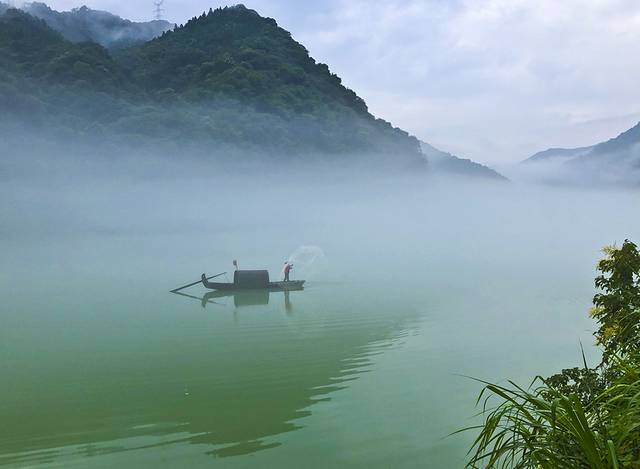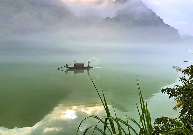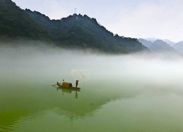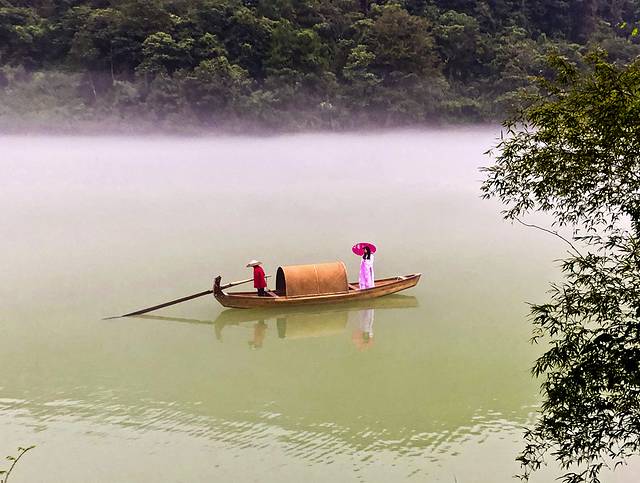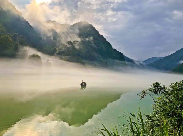 9月的高椅岭,火辣辣的阳光下丹壁绿水美仑美奂,却让欣赏美景的人几乎中暑。第2天的小东江却是在阴雨中走过,第3天清晨宝贵的阳光终于穿透云层,给了人们几分钟恩赐,眼前景色从朦胧梦幻一下子变成靓丽惊艳,云蒸霞蔚。这束阳光给小东江的清晨注入了灵魂,难以忘怀。