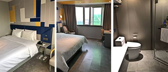 回酒店取了行李,4:00左右换到火车站附近的花之筑酒店入住。这个酒店附近比较繁华,还有瑞幸咖啡。房间不错,也是个物美价廉的酒店。这里距离东洲岛近,方便今晚赏夜景,明天游东洲岛和乘火车。