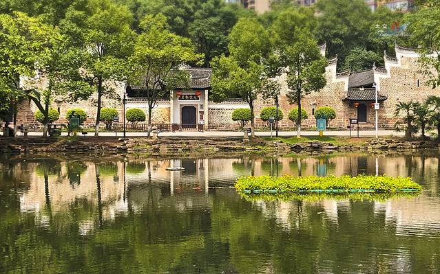 之后出发衡阳保卫战纪念馆,也是一座老屋-郑家新屋,从介绍上看很有湘南特色的清代民居。公交车半天才到,顶着大太阳穿这广场和荷塘,还是不开放。真让人扫兴!只在外面欣赏了一下大门可正面墙,那墙上的小窗外装饰真是别具一格。