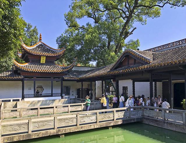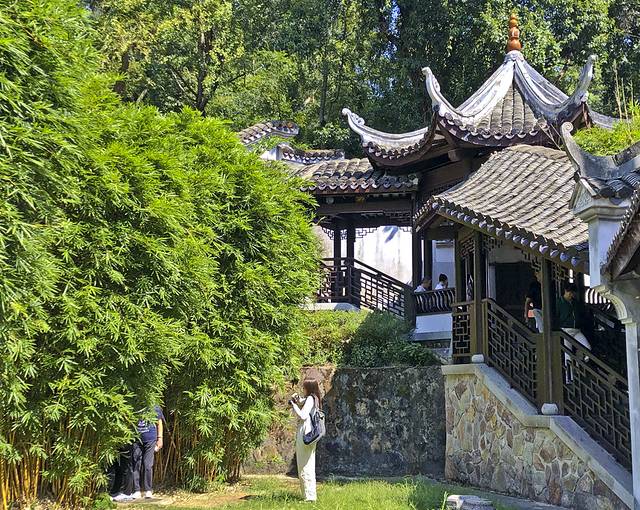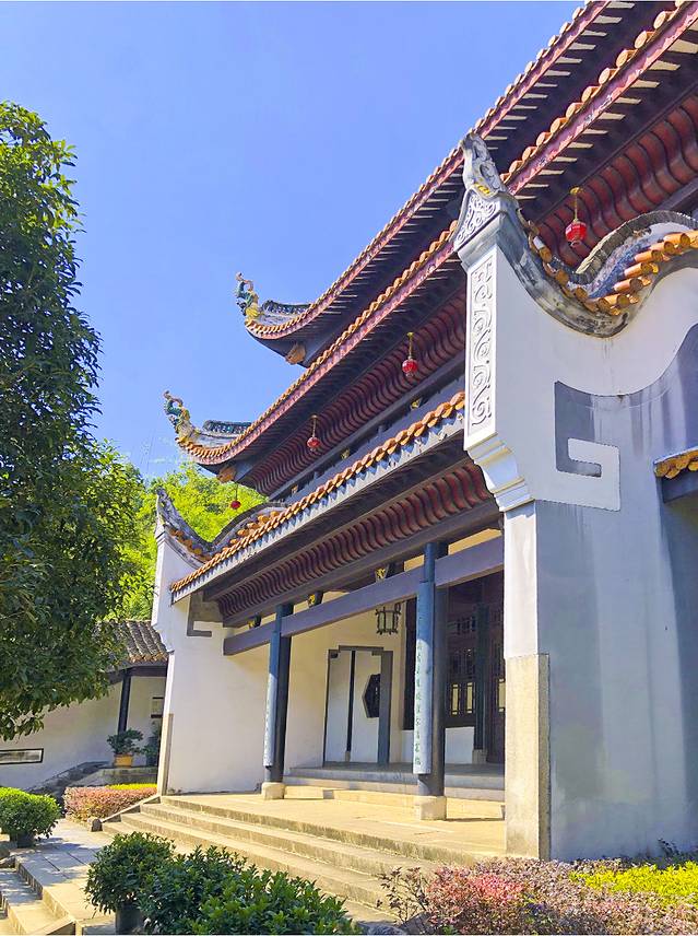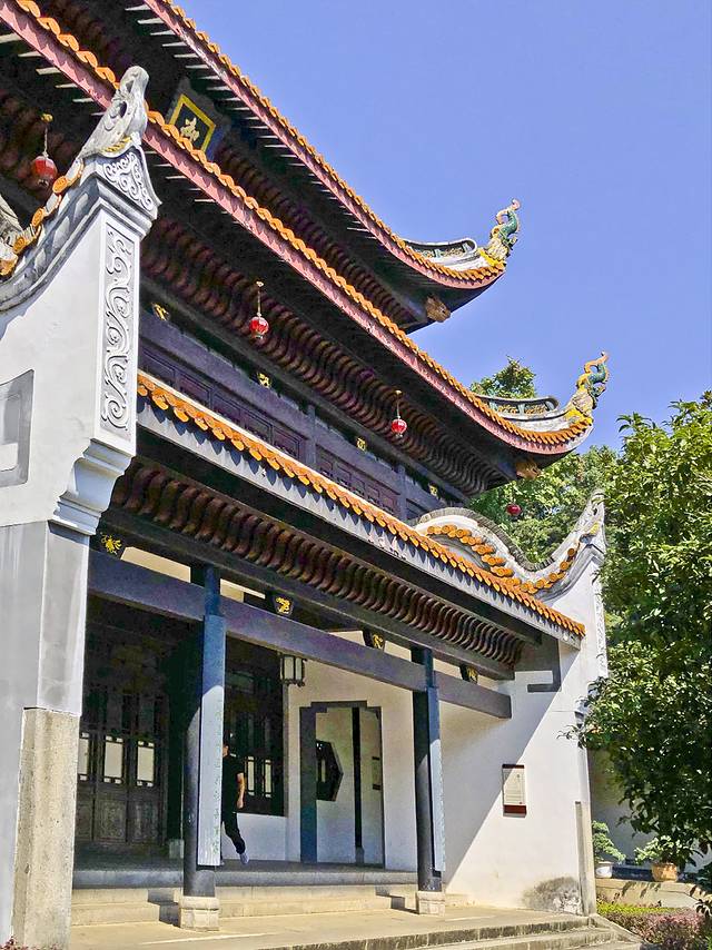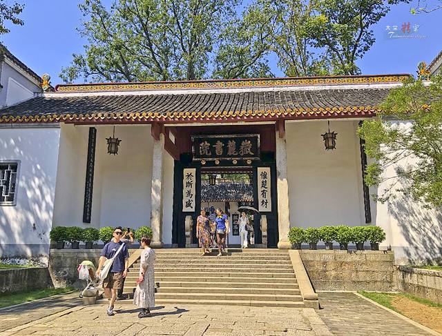 进入首见到首先游览的是御书楼,清康熙二十六年,巡抚丁思孔从朝廷请得十三经、二十一史等书籍,建御书楼于在此。清代中期,书楼已发展成为中国民间一座较大型的图书馆,藏书14130卷。今御书楼仍然作为古籍图书馆供书院教研人员及学生使用,藏书数量已逾五万册。这些内容游客是见不到的,吸引我的是那飞檐翅角,美艳靓丽的精致建筑,风格带有闽赣特色,白墙黄瓦,灵胧翅角,在阳光下闪着魅艳之光,画面让我好生赞叹。