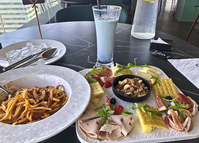 29层的旋转餐厅环境一般,人很少。我点了一个意大利拼盘,一个意面,一杯饮品,没有点主菜,我一个人感觉拼盘较合适。品尝后意面不错,拼盘不行。