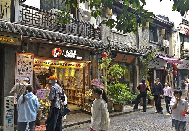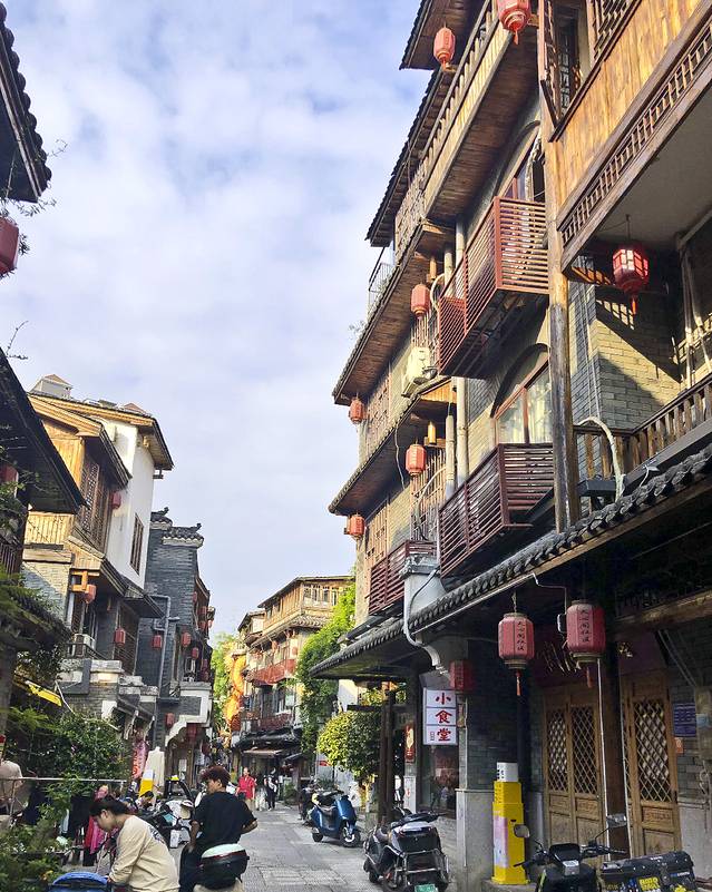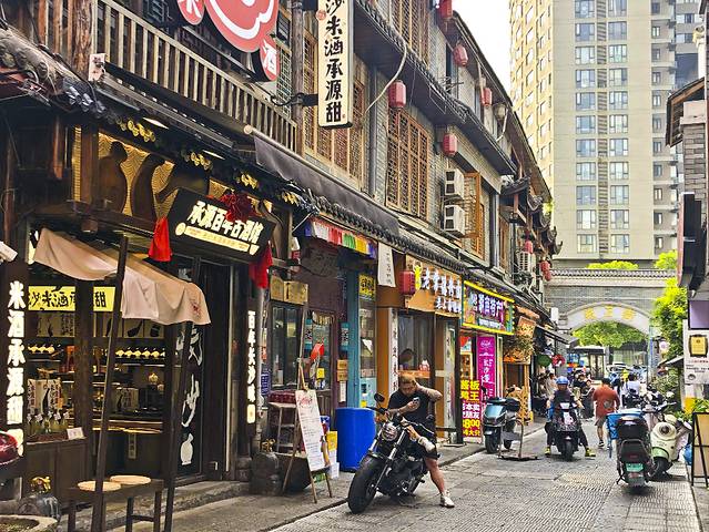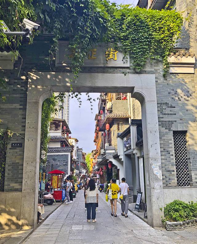 骑上小黄车奔向白果园历史文化街区,离的较远时就见到路边的小巷子不错,便存车走了进去,叫福正街,青石板铺路,两边老屋错落,小店精致美观,漫步在其中还挺有感觉。转过去的另一条巷子叫县正街,也不错。