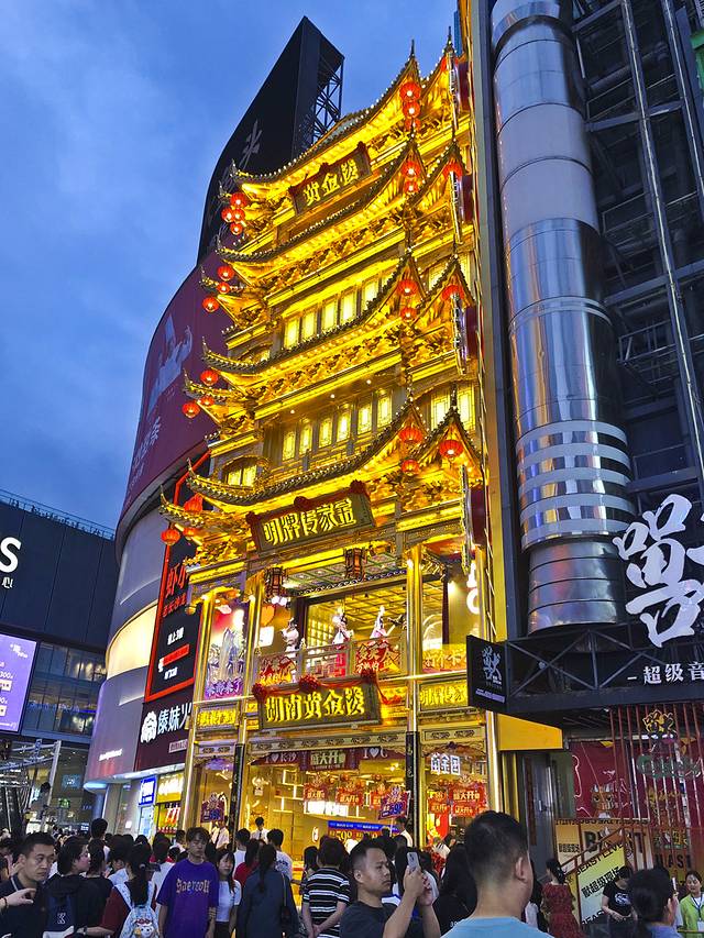 步行街的夜景也没什么特别,只是那个街口的黄金屋太土豪了,没想到长沙这座省会城市境是这样风格。