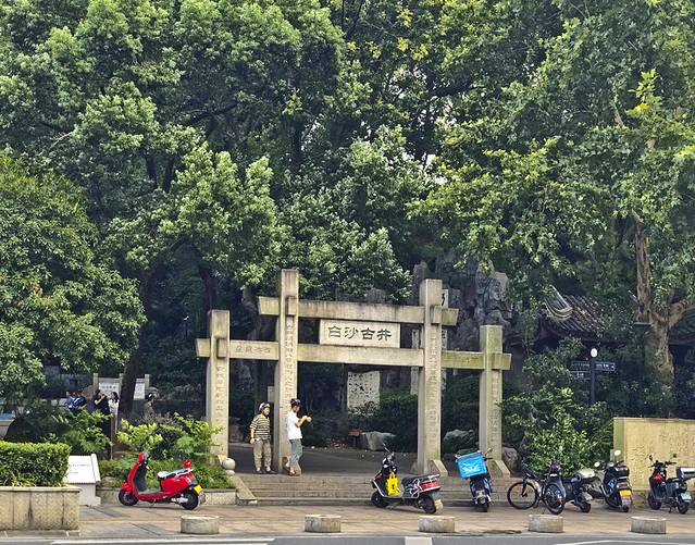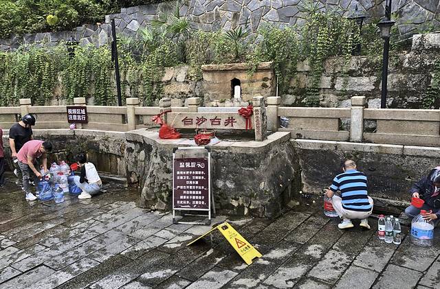 步行不到1公里是白沙古井,是个小公园。古井始凿于何时,由于明代之前的长沙地方志丢失已无法考证,但明代就有记载了。泉水很神奇,水位很高伸手可及,清澈透明,甘甜可口,四季不断。每天来打水的附近居民多,我也打了一小瓶。