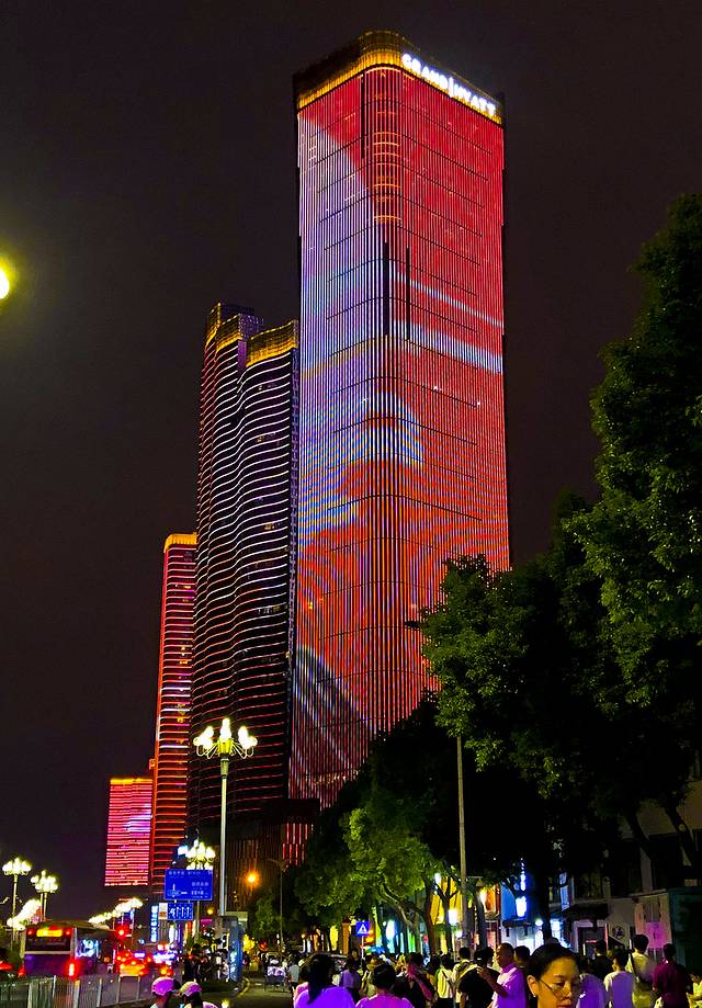 乘1路来到杜甫江阁,等了一小会儿7:00亮灯了,拍了几张。到马路对面又拍几张,附近的几栋高楼上也满是彩灯,发,观赏的人超多。坐会儿结束观赏回酒店。