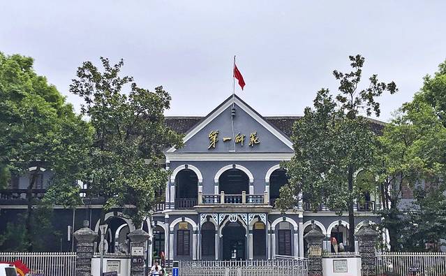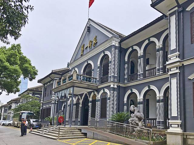 昨晚发现潮宗街有家瑞幸咖啡,8:00开门,便过去点了杯拿铁,之后按我今天游览计划,先去了第一师范旧址,一个较大的中西式建筑结合的校园。有办公楼、教学楼、自习楼、大礼堂、寝室等。 第六批全国重点文物保护单位。