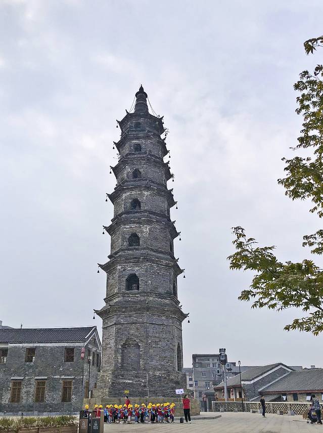 汴河街和巴陵广场昨晚也游过了,便打车直接到兹氏塔,还是国家级文物保持单位。慈氏塔距今已有近八百年的历史,塔身高34.58米,七级八方实心,仿木结构的楼阁式砖塔。建筑精美,高拔挺秀,是湖南现存最早的砖塔之一。现存古塔为南宋荆湖制置使孟珙于淳祐二年(1242)所修。