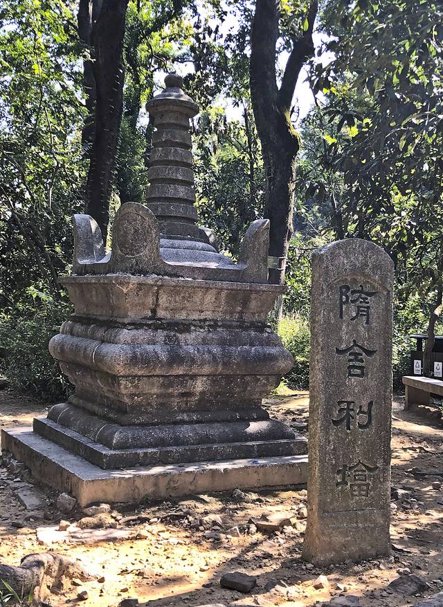 再下面有个隋代舍利小塔,但原来所建的舍利塔早已坍塌了,民国初年有信佛教的子弟原址重建石塔。建国初对舍利塔进行了修整,全部以花岗岩琢砌而成,外表很像僧帽,造型别致。 没什么人便坐在树荫下休息凉快下。