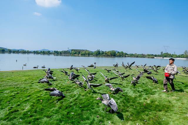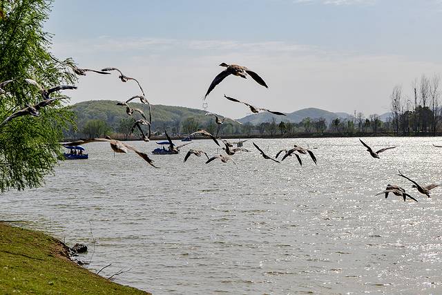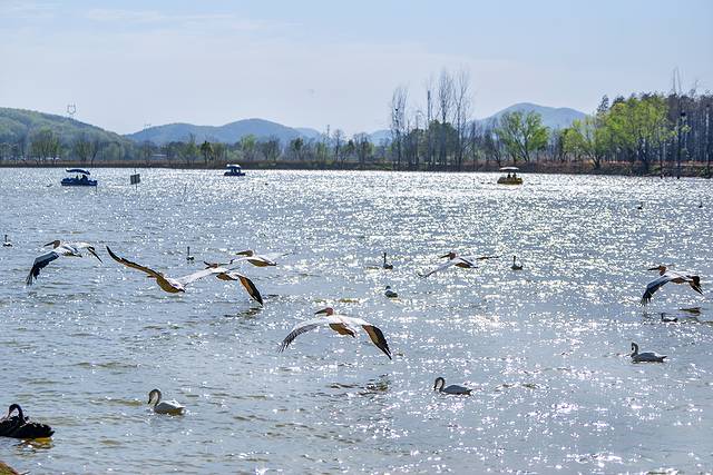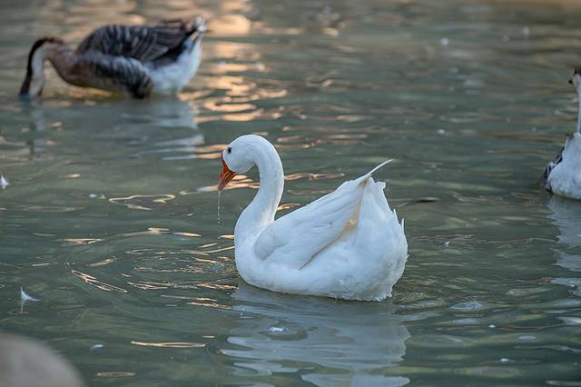 穿过雀鸟天堂,来到一片宁静的湖泊边。湖面上,一群群天鹅优雅地游弋着,时而低头觅食,时而振翅高飞,美得不似人间。湖畔,孩子们或喂食天鹅,或追逐嬉戏,欢声笑语不断。湖上,还有游船缓缓划过,留下一道道涟漪,为这宁静的画面增添了几分生动与活力。