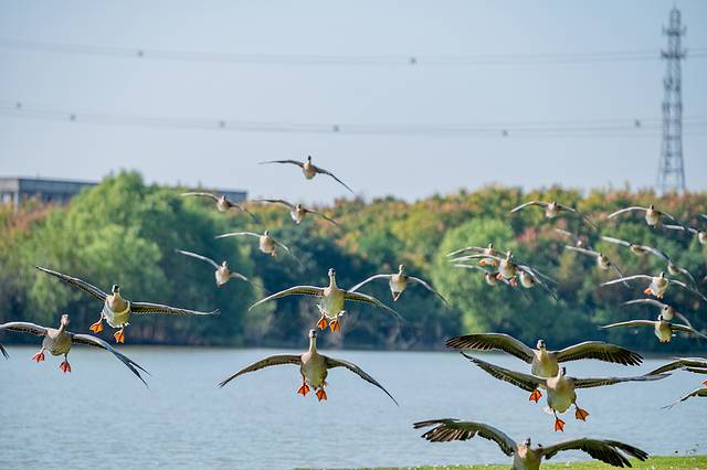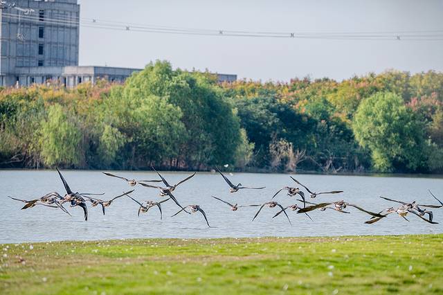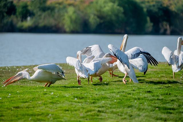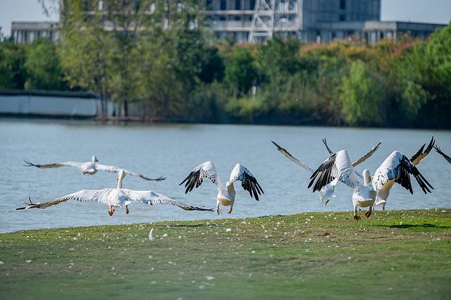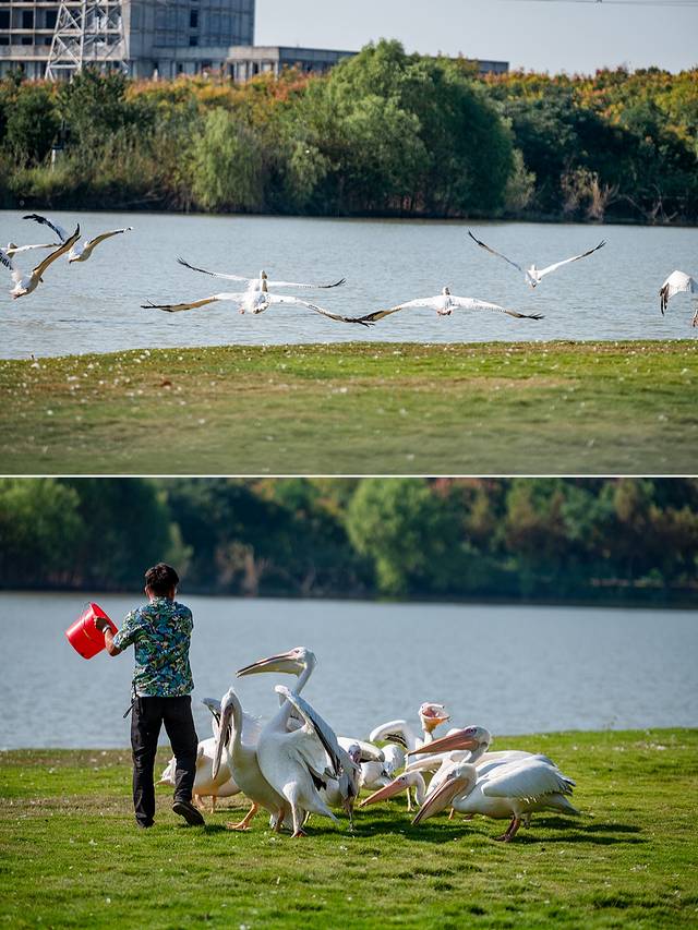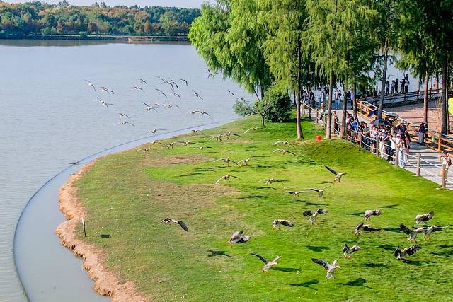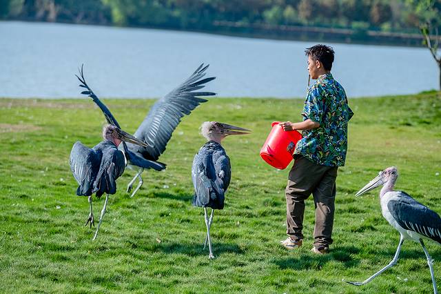 飞禽秀就在园区中心湖面上举行,蔚蓝的天空下,各种鸟类成群结队,振翅高飞,编织出一幅动人的空中画卷。它们或盘旋上升,或俯冲而下,在空中自由翱翔,尽情展示着各自独特的飞行技巧与优雅身姿。鸟儿们的飞行自由而又有序,宛如经过精心编排的舞蹈,令人叹为观止。