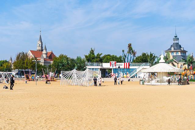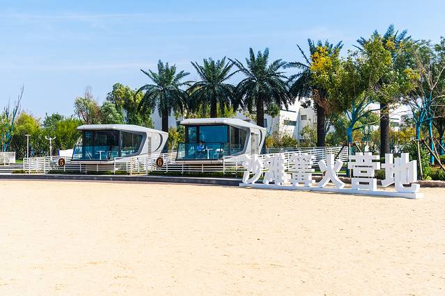 离开城市馆,我驱车前往了揽月湾。这个名字充满诗意的地方,果然没有辜负我的期待。当秋日的风拂过海面,整个世界都被染上了一层温柔的金色。我漫步在沙滩上,感受着细沙轻轻摩挲脚底的感觉,每一步都留下了深深的印记。海风中带着几分凉意,却也格外清新,吹散了心中的烦恼,让我感受到了前所未有的宁静与自由。