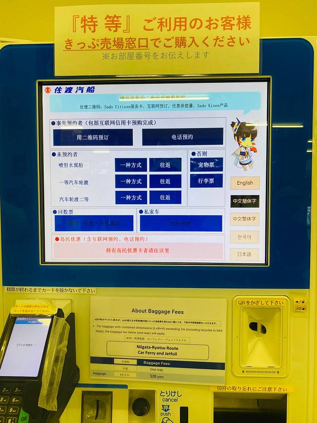 我刚才说了,我的目的不一样,我还是想要了解一下这个城市的。首先第一站就是我攻略上的一大目标—佐渡。上岛的唯一途径就是坐船,于是我从机场出来便马不停蹄的来到新潟港出发前往佐渡。从新潟港出发至佐渡的两津,一个是高速汽轮(67分钟,票价7050日币)、一个是普通的轮渡(2.5h,票价5020日币)。如果大家有时间的话,我觉得都可以体验一下,据说乘坐高速汽轮的时候,运气好的话还能看到越水而出的海豚,反正我是没有看到,希望你们去的时候能够有这份运气哦!