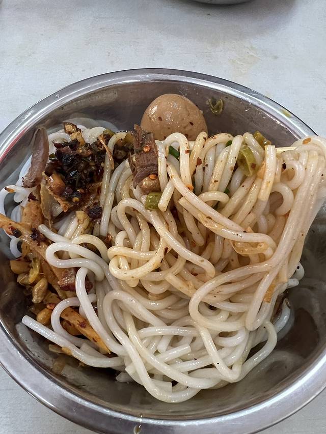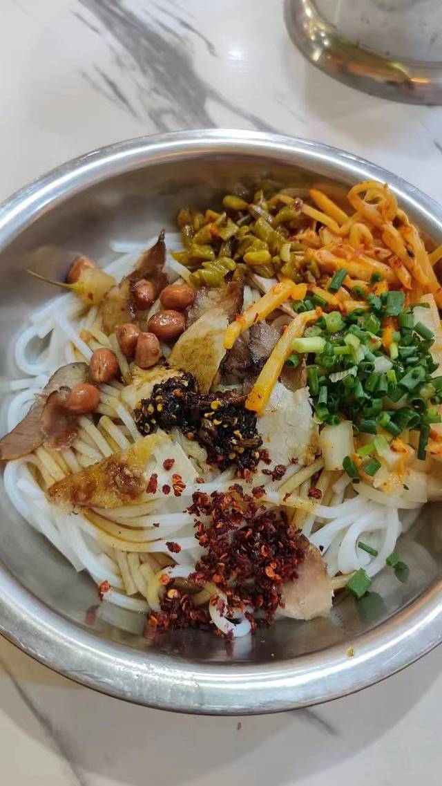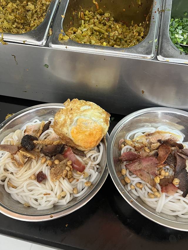 7:00出门,打车朋友推荐的本地人喜欢吃的早餐马岭米粉,这家到中午就打烊了,昨天就没吃上,今天刚好就在车站旁边可以来吃。烧鸭粉烧肉粉都很好吃。