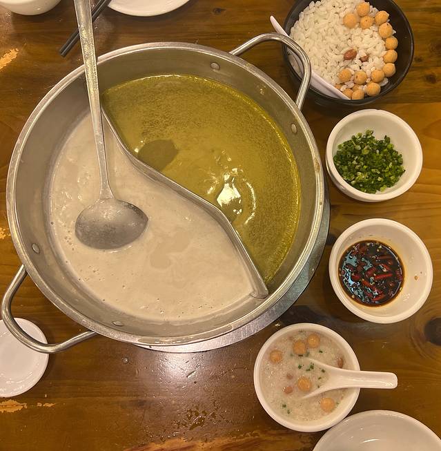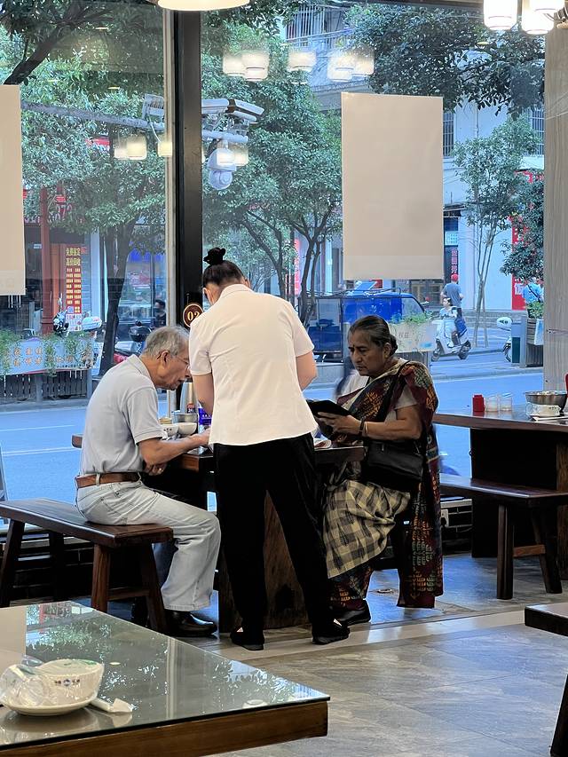 晚上去吃福阿婆油茶。团购才59.8元。碰到印度人也来吃。主打当地特色菜,醋血鸭很香很下饭,甜咸两种油茶,米豆腐,都很好吃。