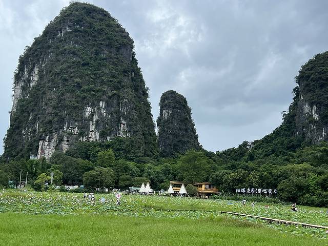 阳朔的浪漫,十里画廊占一半。来阳朔十里画廊必逛,除了美丽的山可以看,还有稻田可以拍照,亦有一些荷花可以拍照,但是进去里面是要收费的,5园一人,有的还有道具。另外还有射击、攀岩、载人飞艇等游乐项目,阳朔的千古情和遇龙庄漂流也在不远处。