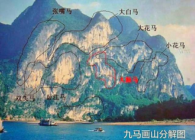 阳朔竹筏需要从阳朔汽车站坐大巴去30公里左右的兴坪镇,早上七点开始一天很多班车,票价15元,车程1小时。到站后直接去漓江竹筏的售票处,漓江山水很美,时间长其实也会审美疲劳,所以170元的精华段游览就可以了,大概1小时,4人一筏,人不够会给拼,一路上山水很美,真是筏在水上,人在画中的感觉。到达九马画山停留一下再返回,需要靠想象才可以看到九马,我在网上搜了个图对照着看还是能看出这个意思的。