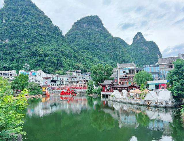 在上竹筏前和下竹筏后都会有拍照,就是20元的景,坐完竹筏后可以简单吃个饭或者逛逛古镇,但实际上古镇很商业化,没什么逛的,要是找吃的记得看团购。我找了家冲啤酒鱼的,比在阳朔吃的好要正宗,价格也更划算。结束后就去阳朔动车站坐动车去柳州了,结束愉快的桂林之旅。