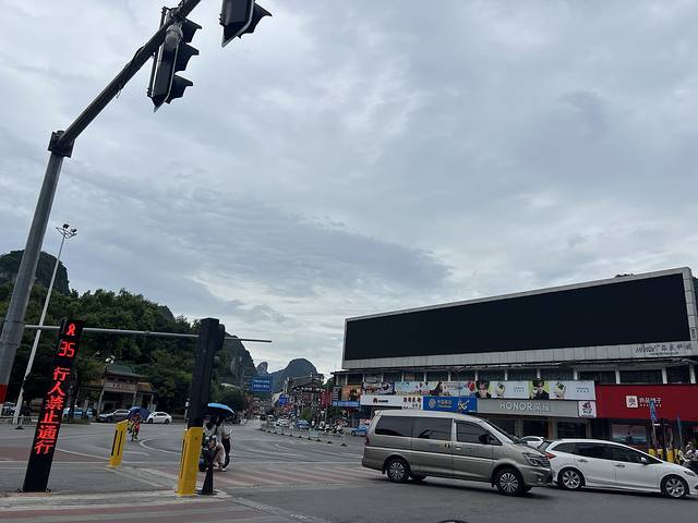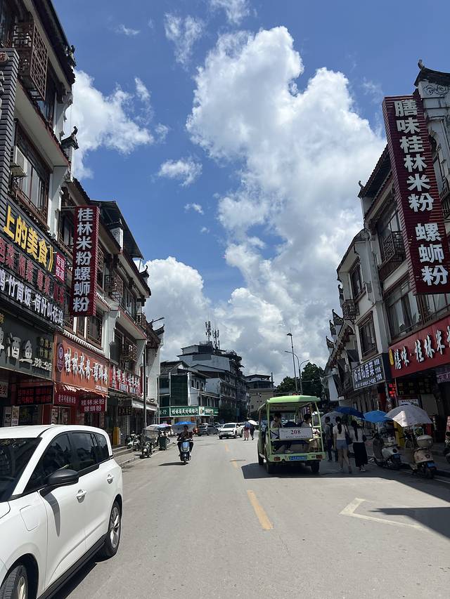 有很多餐厅,有连锁的如麦当劳、星巴克、coco奶茶这种,也有很多当地特色的,阳朔啤酒鱼这边很多,我吃了还不错。
