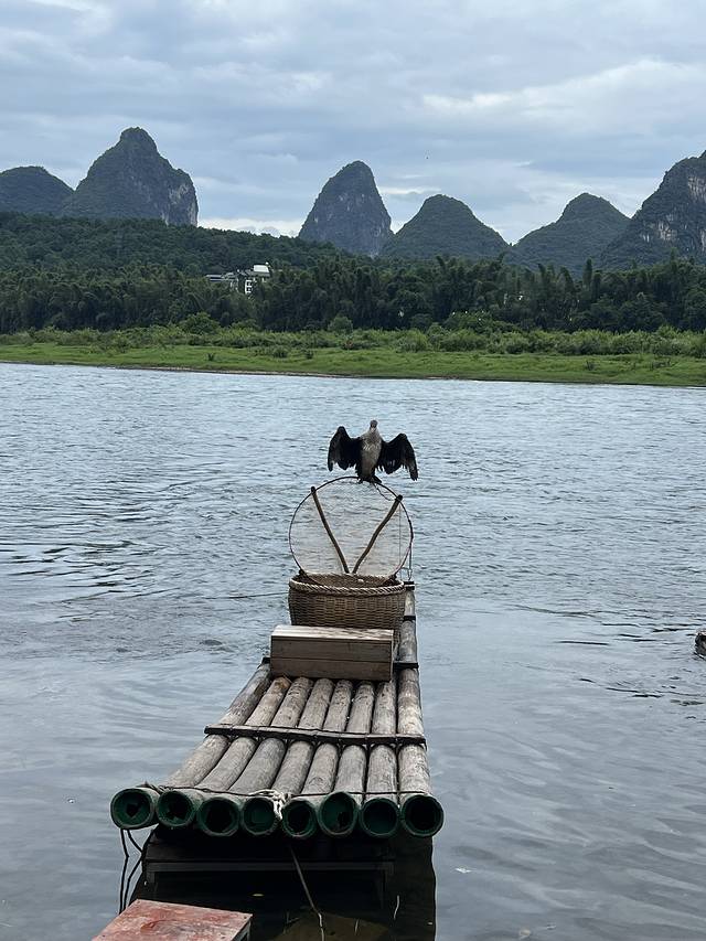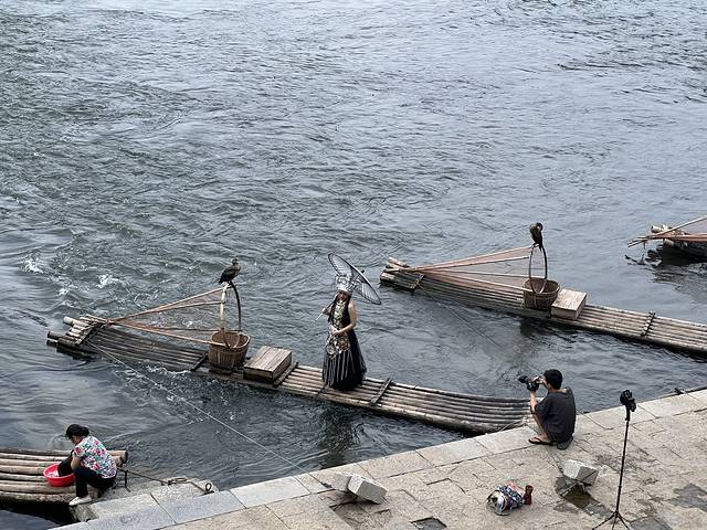 我们傍晚逛到一个河边,河边全是竹筏,还有漂亮的小姐姐小哥哥们在拍照。鱼鹰也都很配合在拍照,好可爱啊。在这里拍一套民族风情的艺术照或者是婚纱照也不错。
