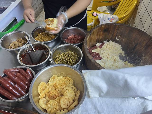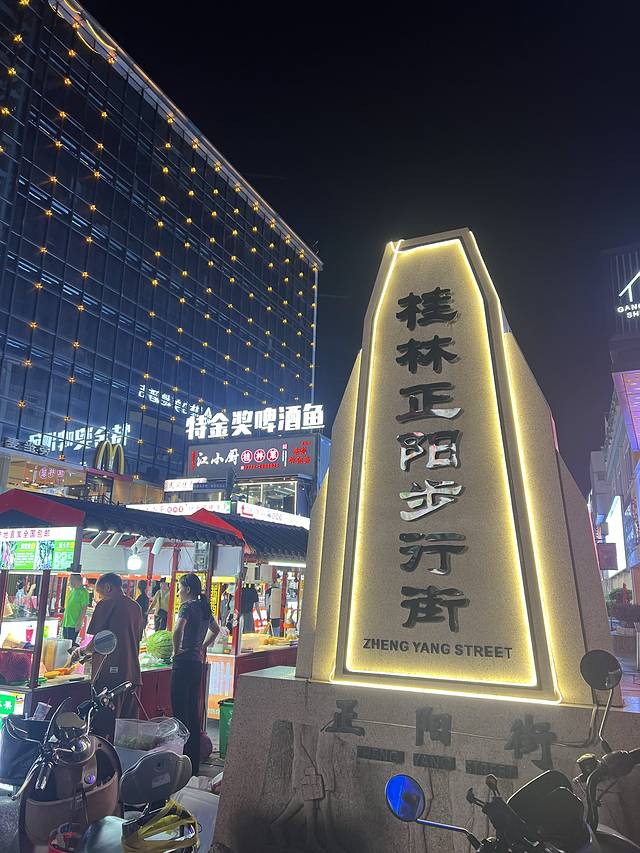 步行400米就是正阳步行街,逛逛街吃点小吃。糯米饭吃5元基础款便宜好吃,很多试吃的当地特色糕点,但是每个地方都差不多没必要买,买了亲爱的蜜雪奶茶喝,不远处就是东西巷步行街。夜宵又忍不住吃了米粉,结束快乐的桂林市区一日游。
