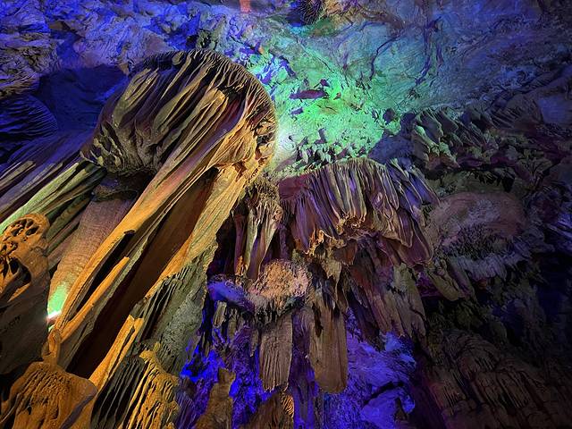 11:20打车半小时11:50到芦笛岩。被誉为国宾洞不是吹的,很多领导们都有来看过。石钟乳向下延伸,石笋因为滴落的水而向上生长,一万年长一米的速度,超越时光,才能呈现出如此美丽的景象。不管外面如何变化,这里就是这样,我想我可以和我的先人们以及我以后的子孙们,看到差不多的美景,也算是跨越了时空吧。