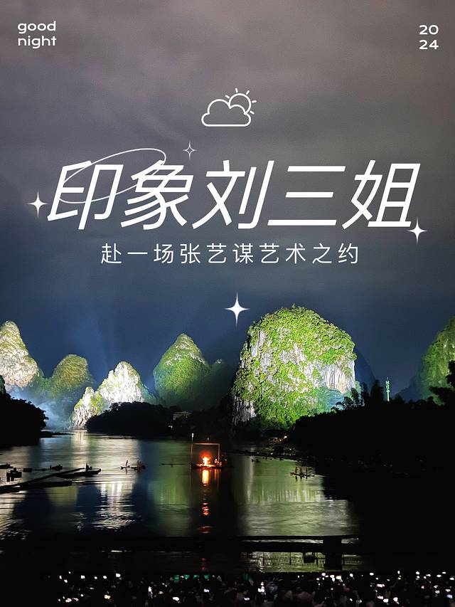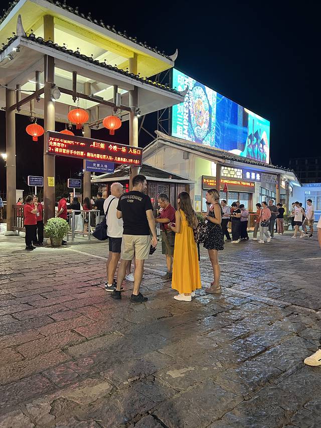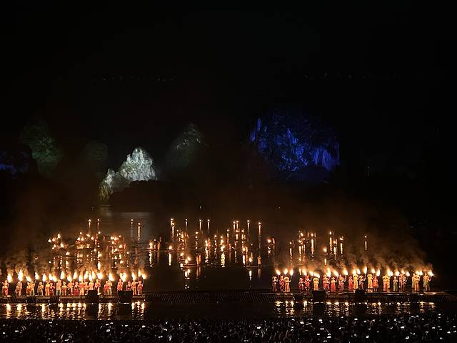 18:50出发去看印象刘三姐,感受下张艺谋的艺术熏陶。张艺谋的印象系列,在武夷山有印象大红袍,到桂林就是印象刘三姐。一天一场,演出时间:20:00,演出时长:1小时左右,票价:根据座位126元-668元。