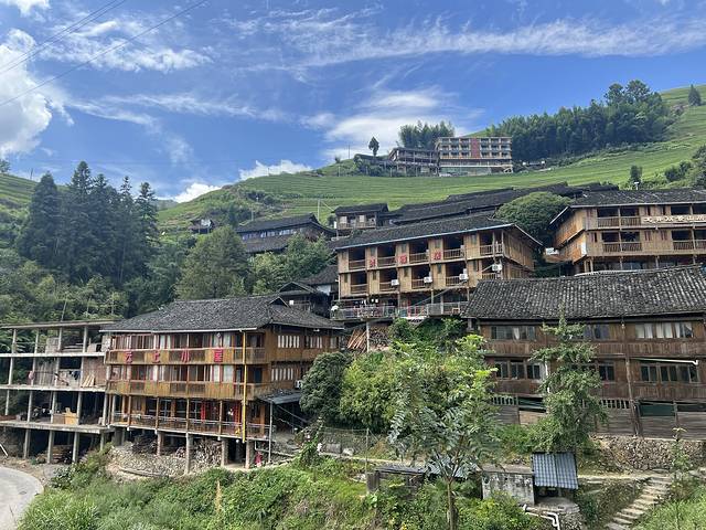 龙脊梯田距离桂林市区大概80公里,如果自己去得先去龙胜县,有点麻烦,报一日游挺好的。8:30出发龙脊梯田,9:50到达第一个景点黄洛红瑶长发村,有80元的长发表演我们没看,长发博物馆是卖一些洗发用品的,鱼鳞坝拍拍照。11:30被带去游客店吃饭,有竹筒饭竹筒鸡之类的,我们没吃,其实周边很多餐厅也都有团购,山上也有吃的比这里的游客店还便宜。