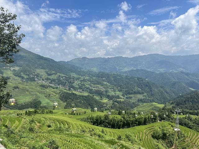 12:10出发去龙脊梯田。12:40到金坑缆车处,我们选择缆车上山步行下山,坐缆车上山25分钟左右,到金佛顶拍拍照。⛰️梯田层层叠叠,春季灌田、夏季绿油油、秋季黄澄澄、冬季银装素裹,都很好看,值得一来。 但9、10月份稻谷成熟,是最佳的观赏季节,整片梯田都是金灿灿的!就像童话世界里的王国。