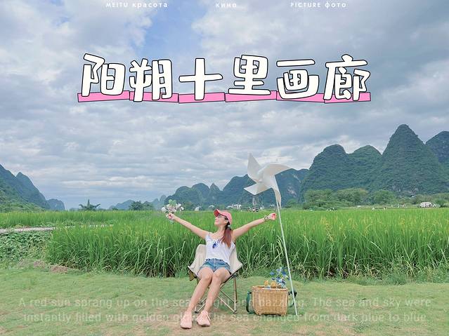 沿途有一些可以打卡的景点,大榕树、月亮山是要收费的,可以按照我的线路游览免费打卡点。西街出发-桂林千古情(门口拍个照或者看都可以)-遇龙庄景区-双流义渡亭(抓小鱼,体验在车人都能走,竹筏也能过的水路桥上行走)-天籁蝴蝶泉(收费,可不进去看)-工农桥(桥上可以拍日落,遇龙河漂流的起终点,可以看到成片竹筏被收起来的壮丽景象)-安在野民宿(很好看的稻田拍照打卡点,还有秋千、遇龙水韵)。路上可以品尝爱心乡村面包,还有一尺稻田咖啡(村上春树咖啡店)等等。总之玩法很多,不着急可以玩上一天。