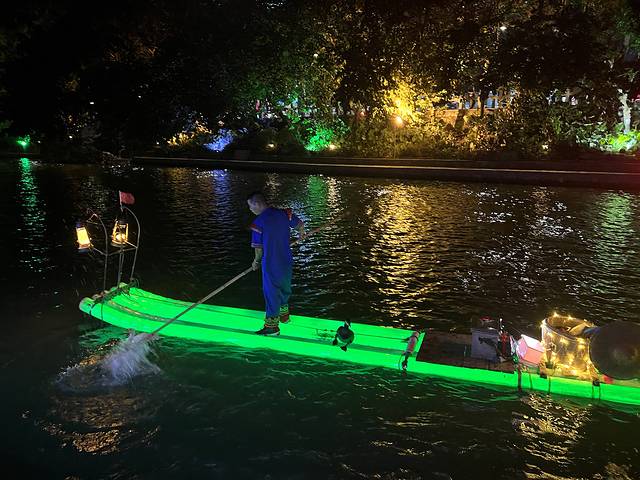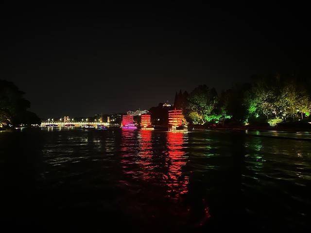 19:05分的船,20:30结束。全程都有讲解,讲的不错。江和湖之间会下船换一次船。因为江和湖之间水位不一样高,还可以体验一下船在水上“坐电梯”的过程,很有意思。四湖还有好看的表演,渔民和鸬鹚抓鱼,美女古代歌舞弹琴表演,历史投影等,灯光和自然山体和江湖水结合,好看极了。