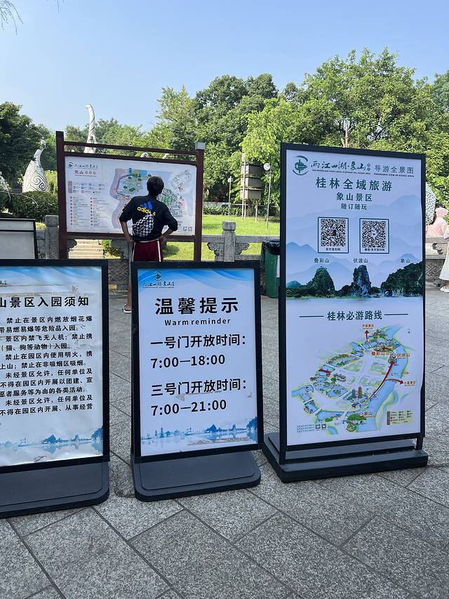 早上悠闲的吃了早餐,9:30 到象鼻山,3号门进1号门出,是课本里的桂林象鼻山,原名漓山,位于桂林市内,桃花江与漓江相汇处,山因酷似一只站在江边伸鼻豪饮漓江甘泉的巨象而得名,是桂林的城徽山,是桂林旅游的标志山,目前免费参观。