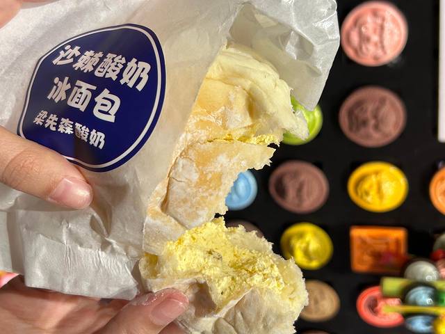 ②黄米凉糕:有点好奇上面那一层黄色的米是怎么上去的,做的时候不会混的一起吗?凉凉的口感,软软糯糯的,尤其蘸上桂花酱吃