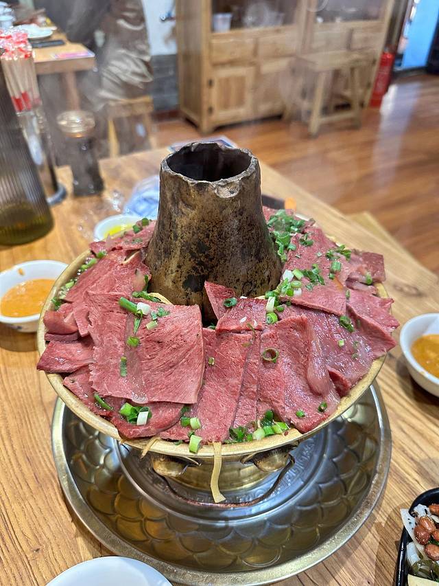 ③什锦铜火锅:和我们平常在外面吃的那种辣火锅不同,上桌的时候里面就已经是满满一锅的菜了,菜的种类很丰富,中间还有炭火在发挥温度,(南大街老赵家山西铜火锅),他们的那个秘制蘸料味道不错,其实直接原汤加菜也香级了