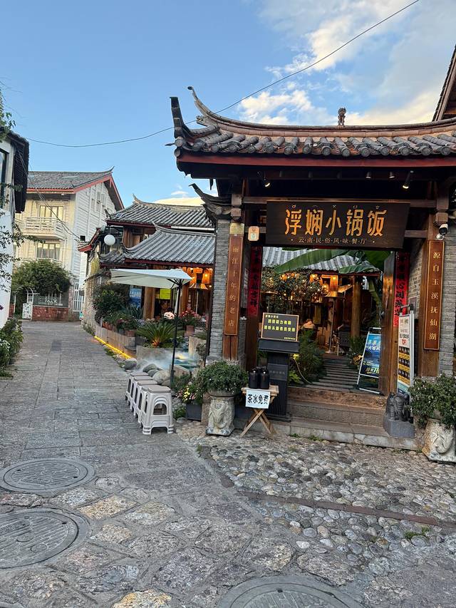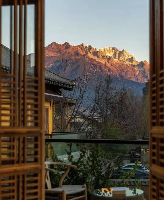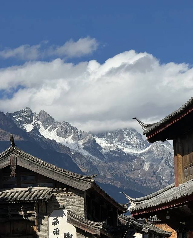 找一家小店,还可以望到远处的玉龙雪山,雪山纯净洁白。晚上还有特色篝火表演,感受不一样的民族风情