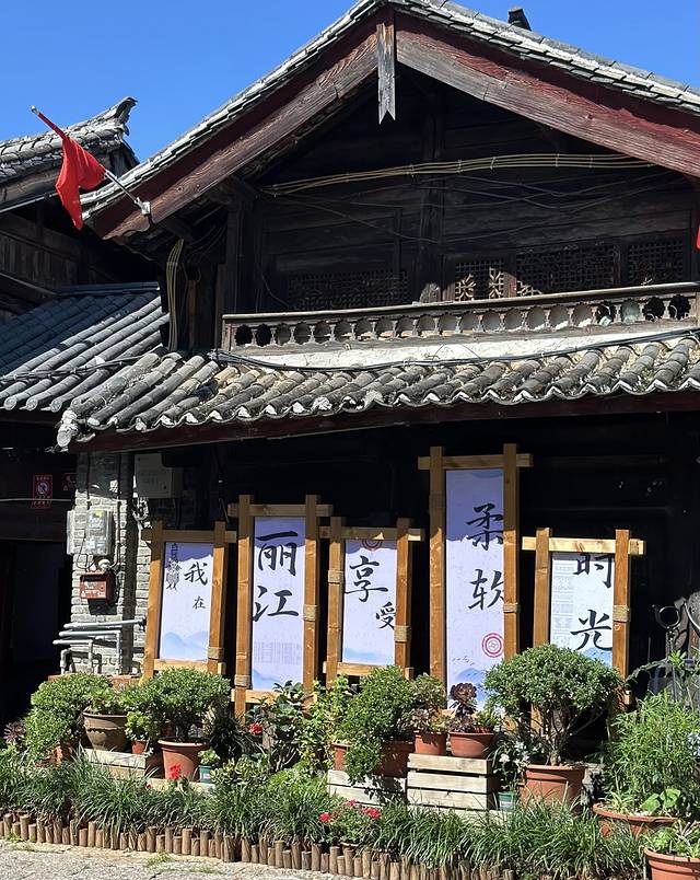 漫步古镇,鲜花遍地;青石板路,蜿蜒曲折。沿街各式各样木质建筑,仿佛再诉说纳西族的悠久历史。