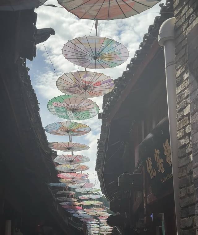 现文巷(油纸伞街):轻轻一抬头便是曼妙的油纸伞,就如走进诗画一般,仿佛身在烟雨朦胧的江南小镇。