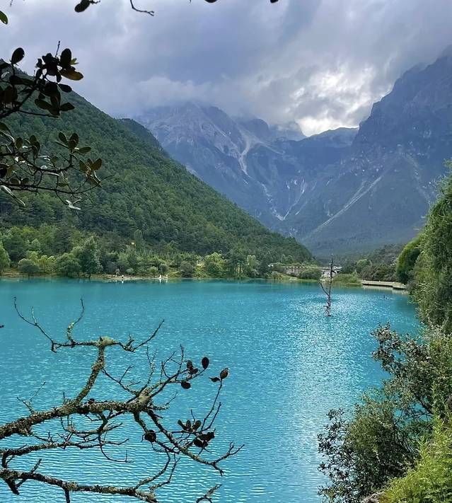 “镜潭湖”,水面如镜,倒映着雪山,是拍摄倒影大片的绝佳位置。