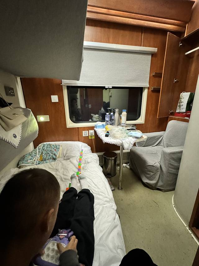 从新疆乌鲁木齐乘坐Z42次列车,订了豪华软卧,我和阿姨带两个宝宝,两个宝宝申请了儿童免票,我和阿姨每人1700多的票价,加上路上的吃喝,大概总共4000元大交通费用,全程38个小时,两个晚上,一个白天。其实坐飞机的话价格会更便宜一些,主要是想感受一下豪华软卧到底是啥样的。