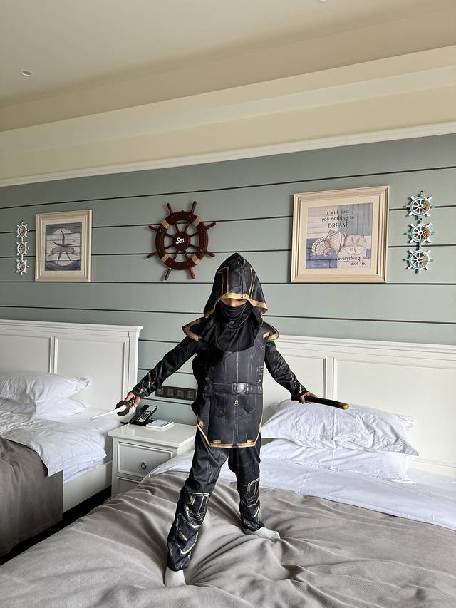 哥哥这个忍者的衣服,让他美了一天,鲨鱼馆前必须摆造型