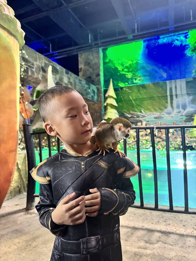 我们先去了极地海洋世界,里面不光有很多海洋生物,还有许多小动物,环尾狐猴,小浣熊,河狸,两个小朋友特别开心