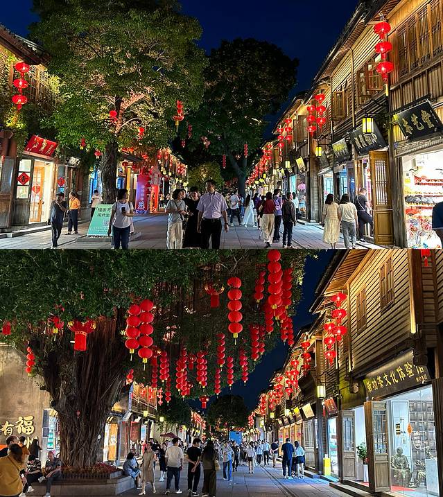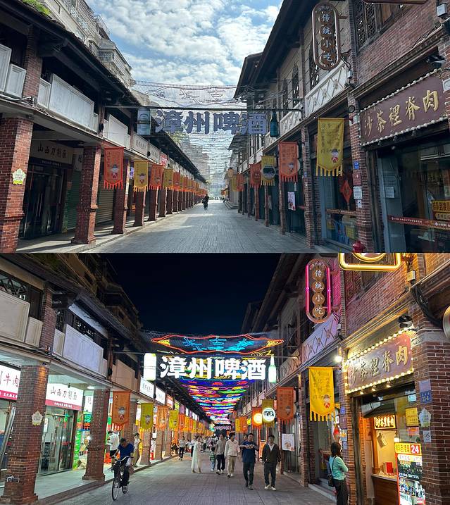 开始晚上逛漳州古城,白天和晚上不一样的景色,古城旁边好几条小巷,必须去看看,后面很多小吃。