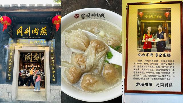 同利肉燕是福建福州一带的地方传统名小吃,属于闽菜系。同利肉燕魅力在于它独特的风味和丰富的文化内涵。严格遵照祖方,选用猪后腿的精肉,配以上好的番薯粉,通过精细复杂的工序手工打制而成。圆头散尾,形同飞燕,入眼如润玉翡翠,入口则滑嫩清脆,其口感和形状均不同于馄饨。因此,在福州有“同利肉燕,百吃不厌”之说。肉燕还有丰富的文化内涵,燕子意味着家业兴旺、团圆,所以逢年过节和亲友、朋友聚会一定都会吃肉燕,因此,福州又有“无燕不成宴,无燕不成年”之说。肉燕还是思乡菜,福州人不管走到哪里只要能吃到肉燕就仿佛回到了故乡。